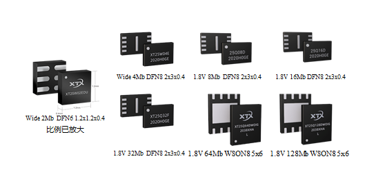 封装形式多样:提供dfn6 2x3, dfn8 4x3, dfn8 4x4, wson8 5x6, sop8 150mil & sop8 208mil等可供客户选择;特别是dfn6 1.2x1.2x0.4mm, 是全球最小封装的spi nor flash产品;